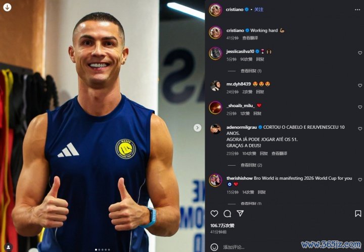 利雅得得胜球星C罗刚刚终结国度队比赛回到俱乐部检修,他更新社媒晒出了检修相片。