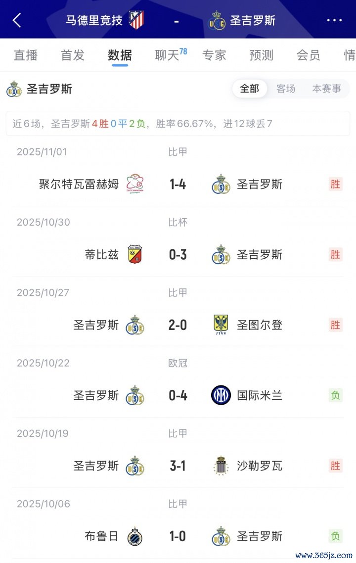 欧冠前3轮,马竞1胜2负,上一轮0-4惨败阿森纳;圣吉罗斯1胜1负,上一轮上一轮0-4惨败海外米兰!