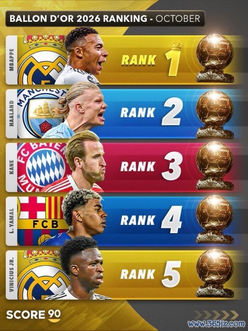 👀外媒发布2026年金球奖首期实力名次:姆巴佩居首,亚马尔第四
