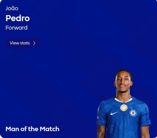 9月14日讯 英超第4轮比赛,切尔西客场2-2战平布伦特福德。 此役若昂-佩德罗为切尔西首发出战,送出1记助攻,他当选本场比赛最好球员。......