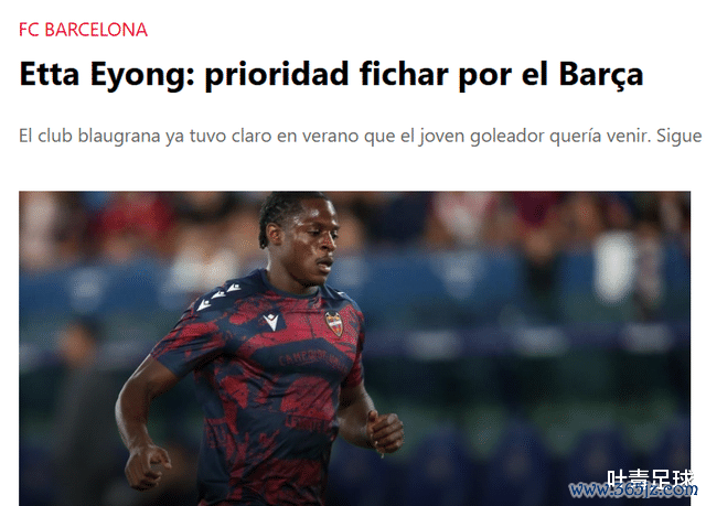 2025-26赛季西甲,服从于莱万特的21岁中锋埃塔-埃永大放异彩,8次出场,孝顺5球3助,弓手榜上名挨次5,只过时姆巴佩(9球)、阿尔瓦雷斯(6球)。10月5日的《逐日体育报》披露,巴萨盯上埃永,并将他视为优先引援野心。埃永的失约金为3000万欧元,切尔西、曼联也对他零散。
