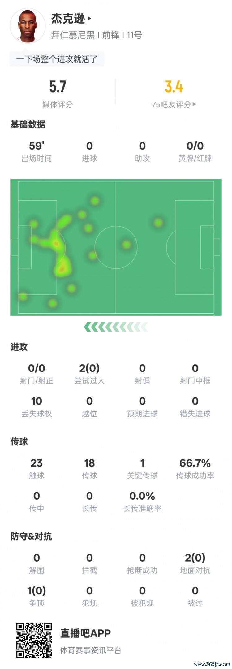 杰克逊本场比赛数据如下: