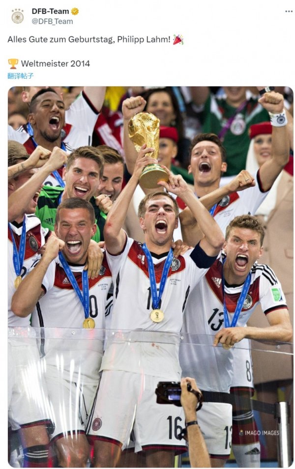 11月11日讯 今天是德国传说边卫拉姆的42岁诞辰,德国队官方社媒为他奉上道喜。 德国队社媒晒出拉姆捧起猖獗神杯的相片,配文:“祝2014年寰宇杯冠军拉姆诞辰风物!” 拉姆处事生存效用于拜仁、斯图加特(外租),为德国队出战113场比赛,打进5球,助攻17次,匡助球队取得2014年寰宇杯冠军。......