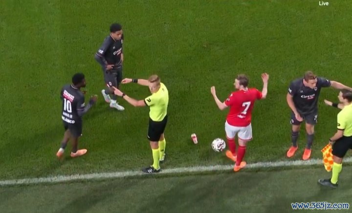 其时,主裁判站在边线上,表现球员们隔离边裁,罢手对评判员判罚的抗议。而看台上的球迷向场内扔出了水杯,击中了主裁的背部和轨范列日球员的手臂。主裁判坐窝吹哨表现比赛就此取消,两边球员皆对这一判罚感到消极。