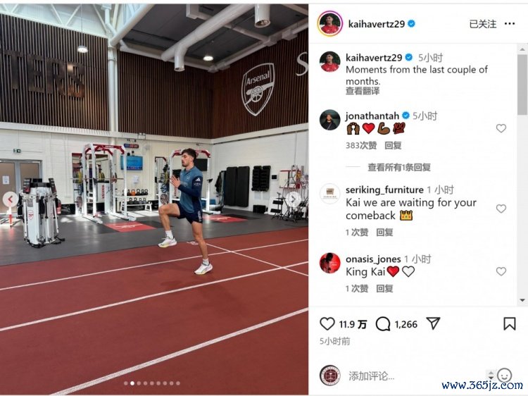 10月28日讯 阿森纳先锋哈弗茨更新社媒动态,晒出康复磨练像片。