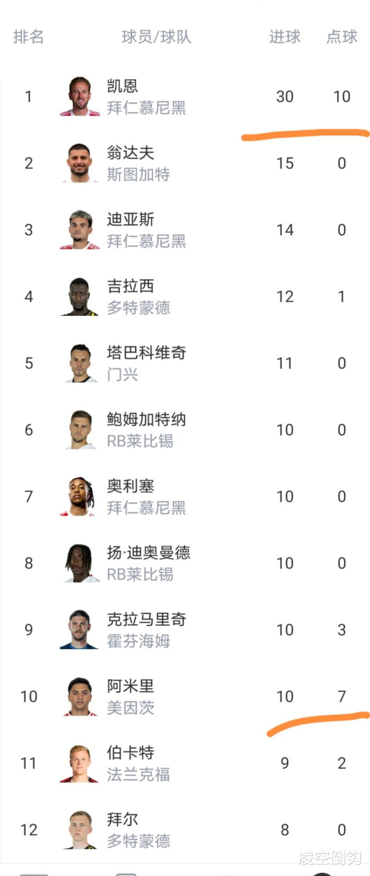 强攻手榜已经有10人强攻羽毛羽排球排网框柱入球数上双,但是凯恩依然领先巨大。