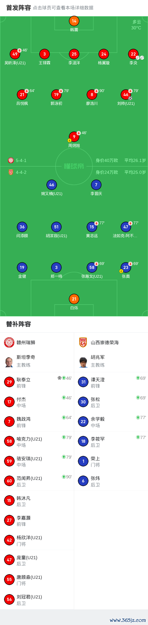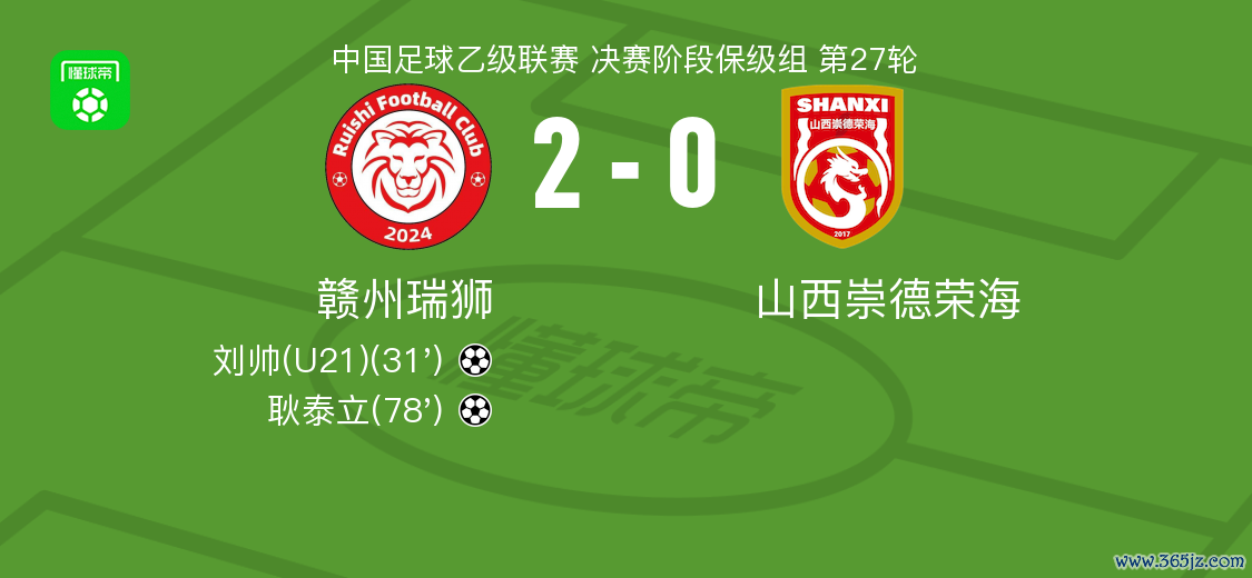 赣州瑞狮2-0山西崇德荣海,刘帅破门,耿泰立锁定胜局