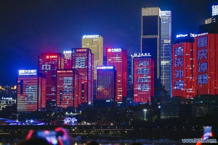 11月10日,两江新区十联屏打出“重庆铜梁龙冲超见效、中超,重庆总结了”等宣传语,以此庆祝重庆铜梁龙队冲超见效。记者 皆岚森 摄