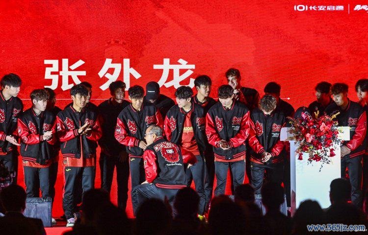 11月10日,在重庆两江游轮“长航朝天银河”上举办的“中超·重庆总结了”主题仪式现场,主老师张外龙跪地感谢举座球员和球队使命主谈主员。记者 皆岚森 摄