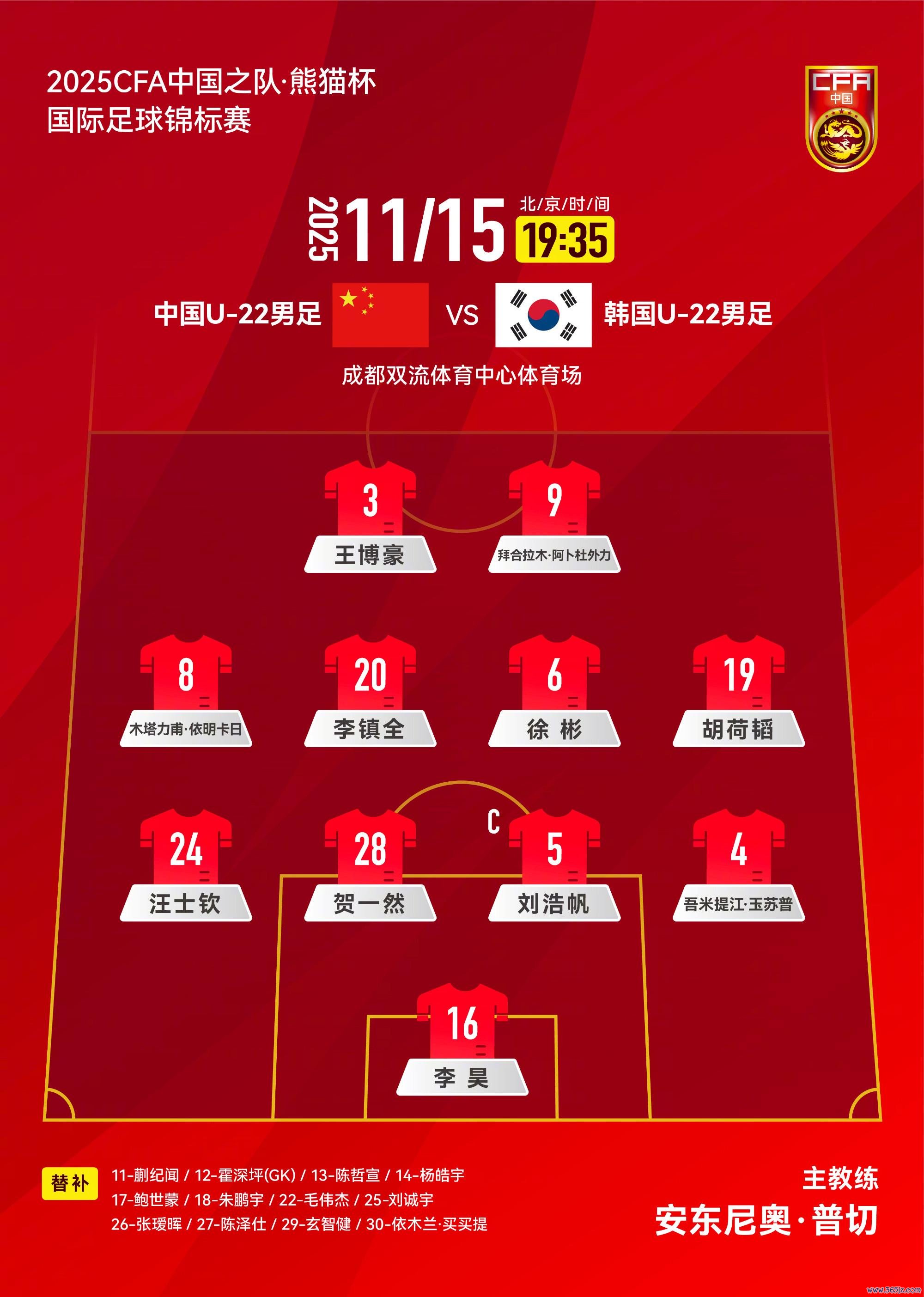 在第一轮比赛中,U22国足0-1不敌越南U22,韩国U22则2-0打败乌兹别克斯坦U22。本轮首发方面,国足U22仅基本沿用上一场比赛的阵型,仅首发门将进行了逶迤,李昊顶替了霍深坪。蒯纪闻、朱鹏宇、杨皓宇、毛伟杰等均替补待命。