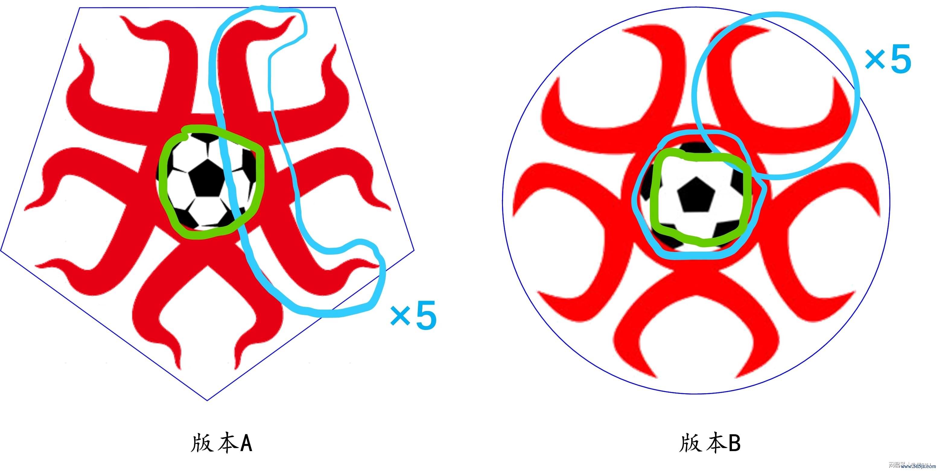 慎重细节。这两个版块乍一看很相似,仔细一看,实有质的不同。出于将就症心态,我用不同热情的画笔和方式将这些不同之处圈出来了。就个东说念主不雅感而言,版块A更有运筹帷幄感。